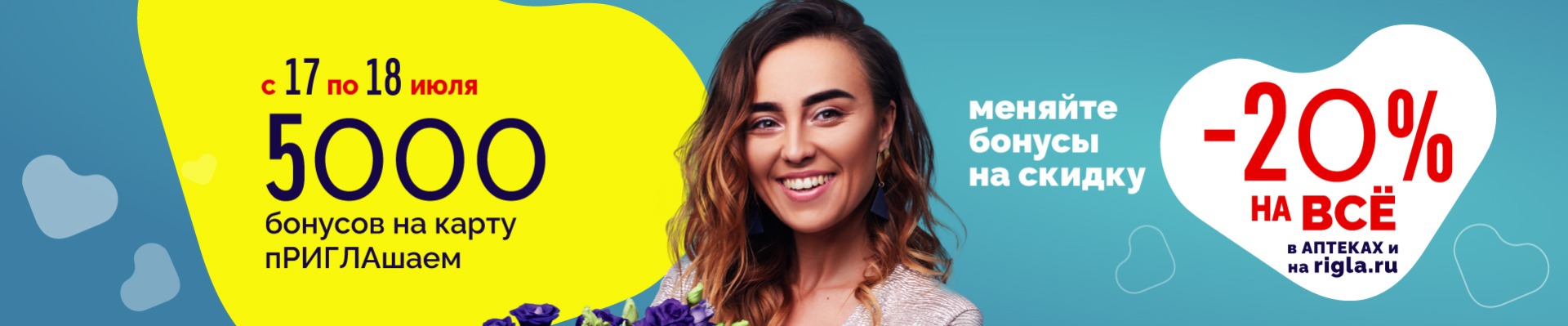 У вас есть карта лояльности Ригла? Активируйте карту до 16 июля и тогда, специально для вас 5000 бонусов в подарок! C 17 по 18 июля списывайте бонусы в оплату до 20% стоимости любых* товаров!