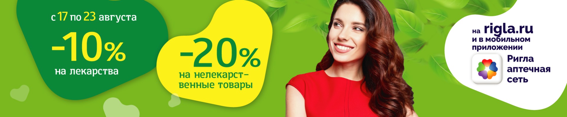 Акция проводится с 17 августа, 2020 г. по 23 августа 2020 г. на сайте rigla.ru и в мобильном приложении в Архангельской обл. и Республики Коми.