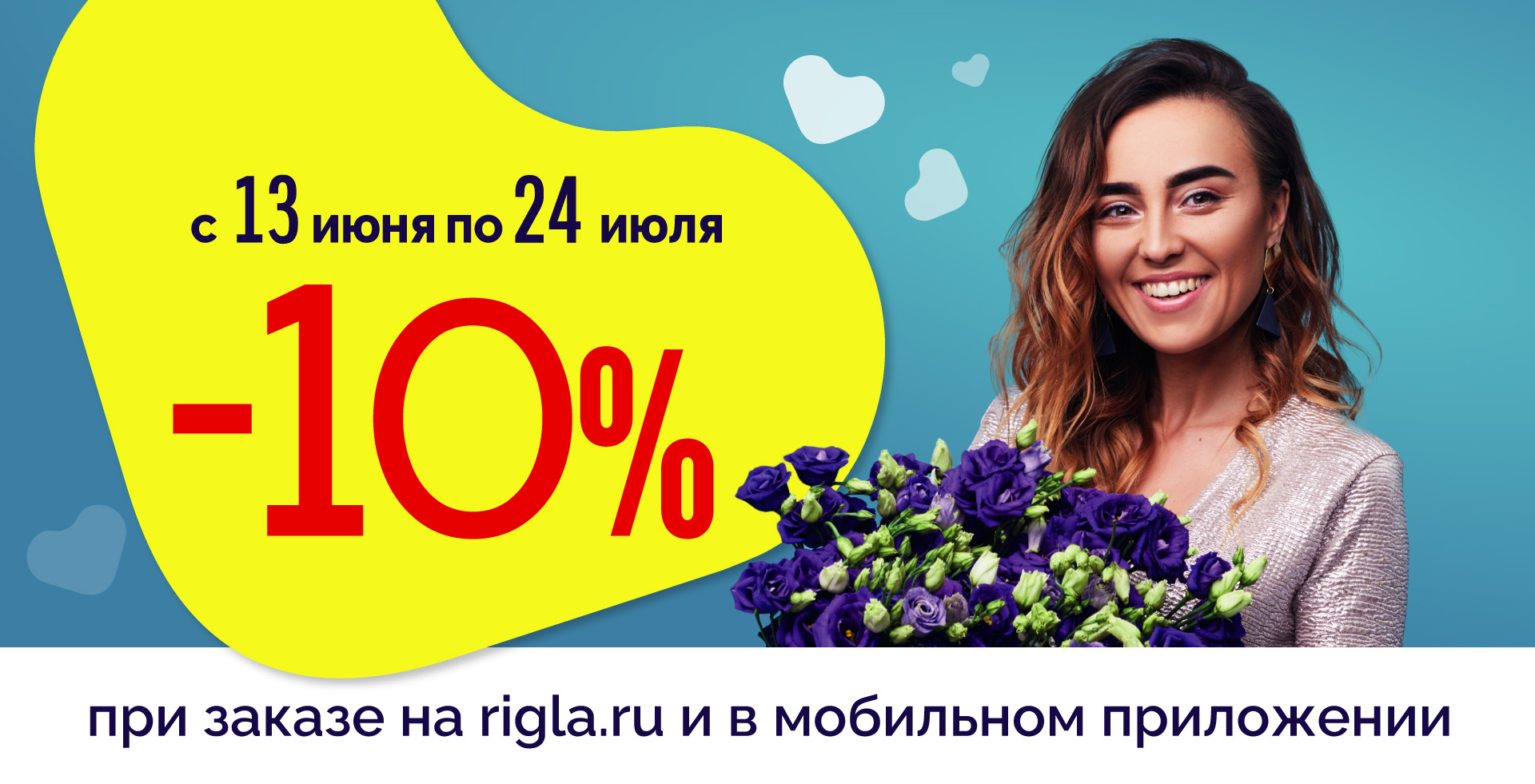 | Акция проводится с 13 июля 2020 г. по 24 июля 2020 г. в интернет-аптеке «Ригла» на сайте www.rigla.ru и в мобильном приложении «Ригла аптечная сеть. Акция проводится в Забайкальском крае, Иркутской области, Республике Бурятия, Нижегородской области, Архангельской области, Республике Коми. Скидка 10% распространяется на все товары, товаров Аллокин-Альфа лиоф. д/р-ра для п/к введ. 1мг №3 и Аллокин-Альфа лиоф. д/р-ра для п/к введ. 1мг №6, а также товаров, участвующих в акциях Товар дня, Стоп цена и специальное предложение. Скидка не суммируется с другими акциями. На товары, приобретенные по акции, дополнительные скидки не действуют. Организатор акции – ООО «Ригла», ИНН 7724211288. Организатор акции вправе вносить изменения в условия акции и досрочно ее завершить без предварительного уведомления. Полные условия акции уточняйте на сайте www.rigla.ru и по телефону 8-800-777-0303. |