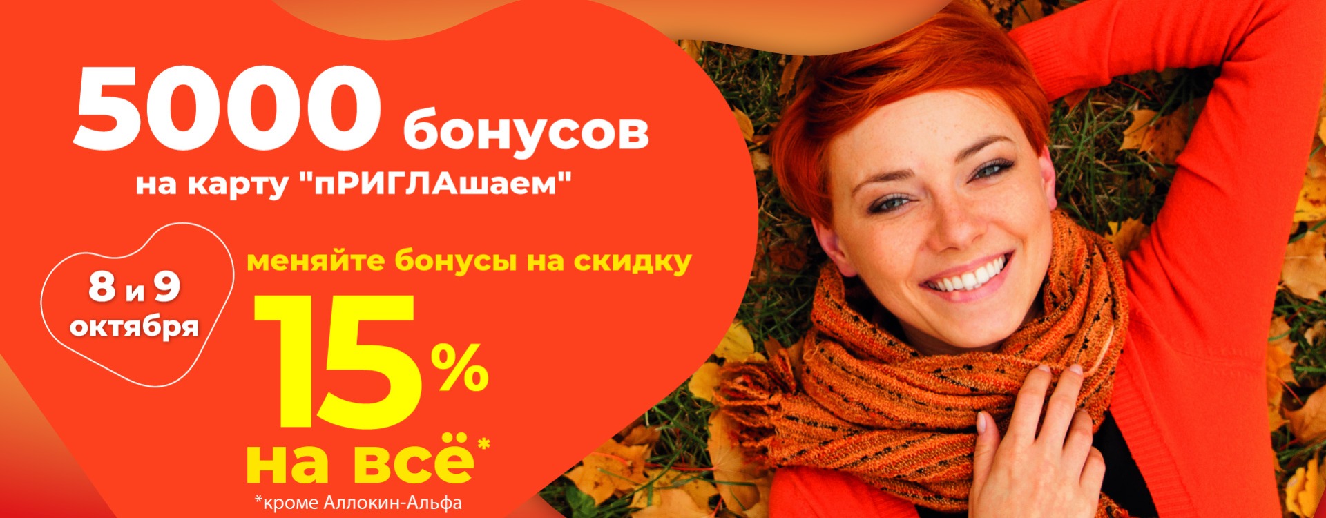 У вас есть карта лояльности Ригла? Активируйте карту до 7 октября и тогда, специально для вас 5000 бонусов в подарок! С 8 по 9 октября списывайте бонусы в оплату 15% стоимости любых* товаров! |