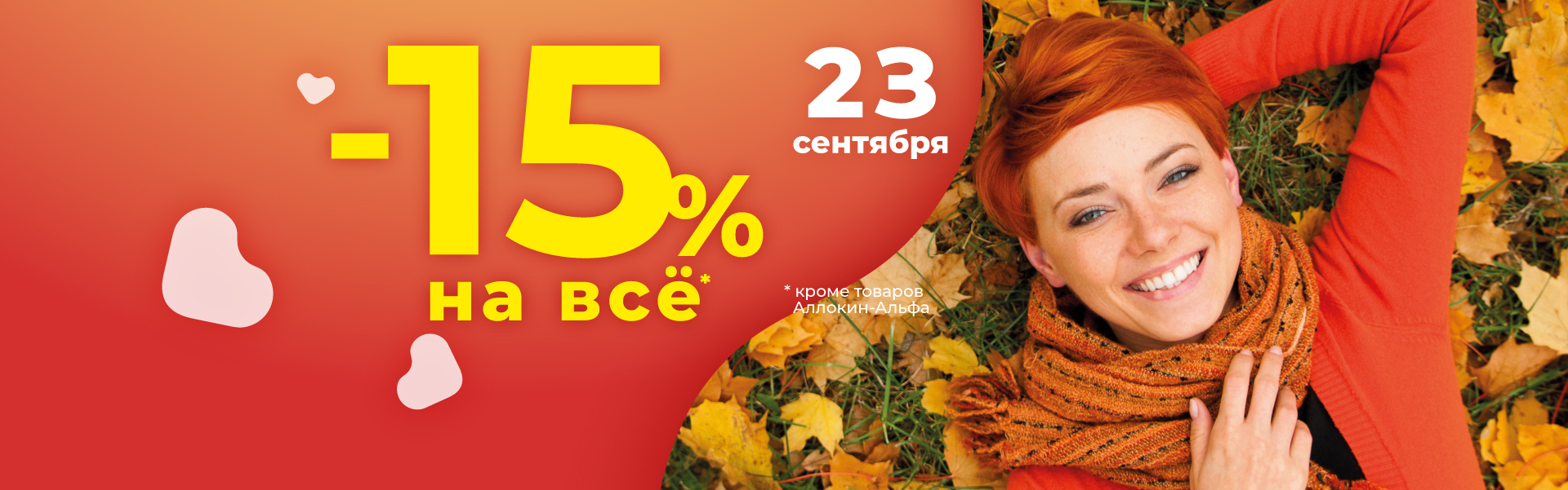 Скидка 15% распространяется на весь ассортимент, кроме товаров Аллокин-Альфа лиоф. д/р-ра для п/к введ. 1мг №3, Аллокин-Альфа лиоф. д/р-ра для п/к введ. 1мг №6 . На товары, приобретенные по акции , дополнительные скидки не действуют. В день проведения акции базовые бонусы по программе лояльности «пРИГЛАшаем» не начисляются.