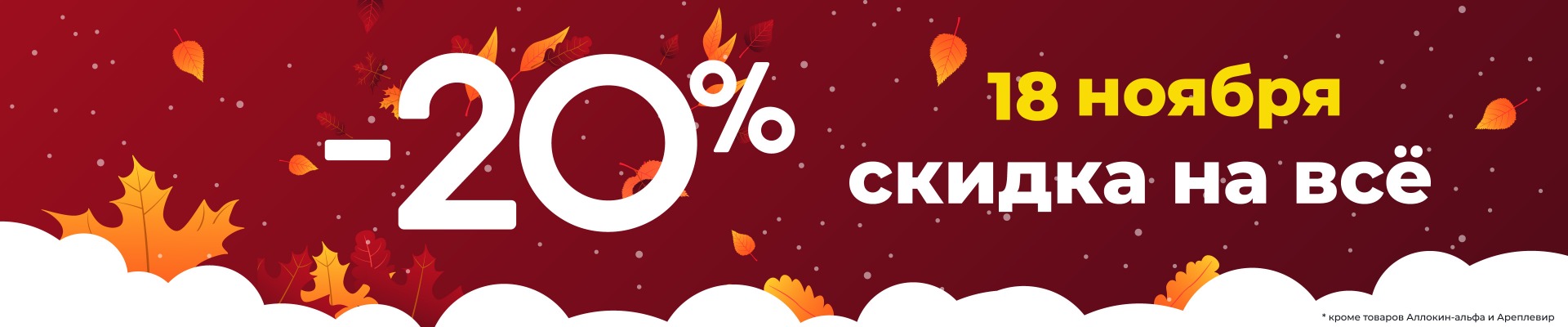 Всего 1 день 18 ноября скидка 20% на все товары*!