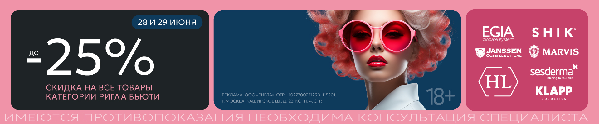 Скидка 25% на весь ассортимент категории Ригла Бьюти за любую покупку!