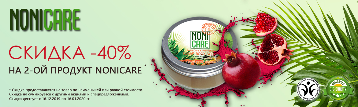 C 16 декабря 2019 по 16 января 2020 в аптеках «Ригла» действует скидка 40% на второй продукт NONICARE!