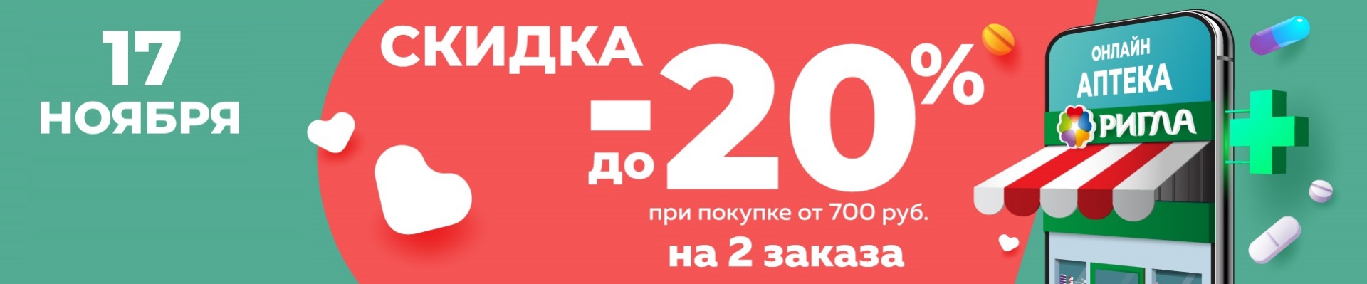 Акция проводится 17 ноября 2021 г. в аптеках бренда «Ригла» и на сайте www.rigla.ru и в мобильном приложении «Аптека Ригла» на территории Республики Карелия.