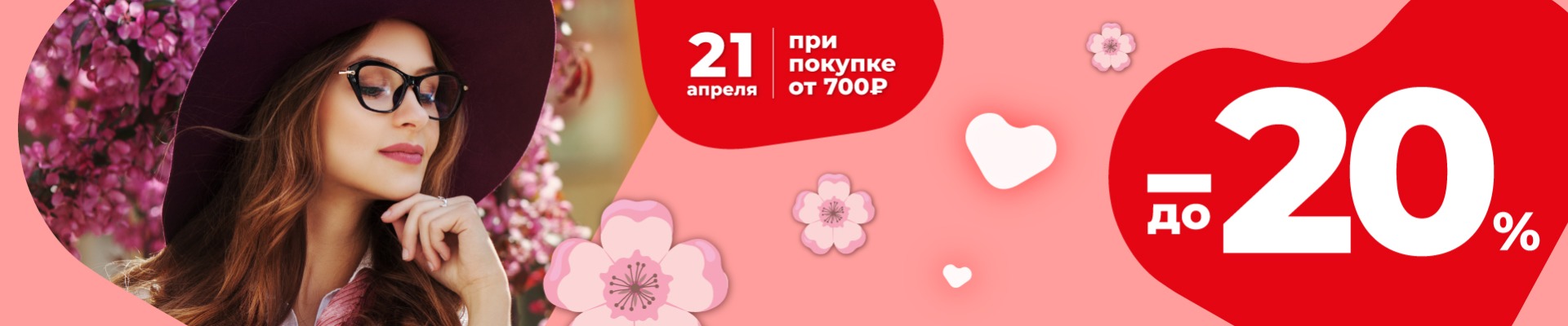 Акция проводится 21 апреля, 2021 г. Скидка до 20% предоставляется в розничных аптеках «Ригла» при покупке от 700 руб. на территории Санкт-Петербурга, Ленинградской области, Республики Карелия. *Скидка распространяется на весь ассортимент, кроме товаров Аллокин-Альфа лиоф. д/р-ра для п/к введ. 1мг №3, Аллокин-Альфа лиоф. д/р-ра для п/к введ. 1мг №6, Арепливир таб.п/о плен. 200мг №40, Ригла маска медицинская трехслойная одноразовая №5, Ферстэйд маска медицинская №5, Аппарат Алмаг магнитотерапевтический, а также товаров по акции «Товар дня» и «Стоп цена». На товары, приобретенные по акции, дополнительные скидки не действуют. Если товар участвует в нескольких акциях со скидками, то применяется наибольшая скидка в рублях. Организатор акции – ООО “Фармацевтическое предприятие «ПАНАЦЕЯ», ИНН 4714024477. Организатор акции вправе вносить изменения в условия акции и отменить ее без предварительного уведомления. Подробные условия акции и полный список аптек, участвующих в акции, уточняйте у сотрудников аптек и на сайте www.rigla.ru.