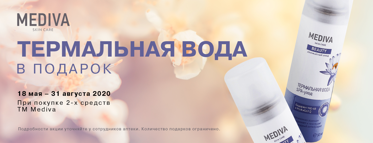 При покупке 2-х средств ТМ Mediva – термальная вода в подарок.